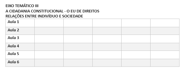 Na trilha de aprendizagem da Cidadania Constitucional são abordados conceitos e princípios inseridos na Constituição, levando noções de direitos humanos, sociais, ambientais, tendo como foco as relações entre o indivíduo e a sociedade.
